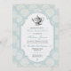 Célébrez une personne ou un couple spécial avec une traditionnelle fête de thé à l'anglaise. Le fond de l'invitation est une image de papier bleu vintage ornée de rosettes blanches. Le cadre avec un centre en papier blanc vintage présente une illustration vintage d'une théière ornée. Suffisamment polyvalent pour être utilisé pour une douche de mariée ou de couple, une baby shower, un anniversaire, un brunch de mariage ou un déjeuner spécial. Disponible en couleurs alternatives avec des produits assortis.