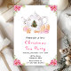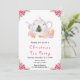 Cette invitation élégante et festive pour une fête de thé de vacances met en vedette une théière et des biscuits au gingembre. Dans les coins se trouvent de belles fleurs de poinsettia rose. Le texte combine une écriture manuscrite et des polices sans empattement pour un look stylé et moderne. C'est parfait pour un brunch de Noël ou une fête de thé.
