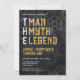 His life has been a great adventure! This fabulous black men's 65th birthday party invitation that says "The Man The Myth The Legend" in a trendy grunge CAP font in white and gold would be perfect for asking people to join you as you celebrate the man in your life's 65th birthday. This invitation is stylish, modern and contemporary with the wheels of time turning in the background. To see your unique invitations select "Personalize this template" and type in your information. It's super easy!