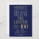 His life has been a great adventure! This fabulous navy blue men's 100th birthday surprise party invitation that says "The Man The Myth The Legend" in a classic font in silver and gold would be perfect for asking people to join you as you celebrate the man in your life's 100th birthday. This invitation is trendy, stylish, modern and contemporary. Having a photo on the back makes it that much more special. To see your unique invitations select "Personalize this template" and type in your information. It's super easy!