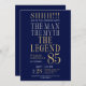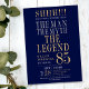 His life has been a great adventure! This fabulous navy blue men's 85th birthday surprise party invitation that says "The Man The Myth The Legend" in a classic font in silver and gold would be perfect for asking people to join you as you celebrate the man in your life's 85th birthday. This invitation is trendy, stylish, modern and contemporary. To see your unique invitations select "Personalize this template" and type in your information. It's super easy!