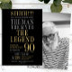 His life has been a great adventure! This fabulous black men's 90th birthday surprise party invitation that says "The Man The Myth The Legend" in a classic font in silver and gold would be perfect for asking people to join you as you celebrate the man in your life's 90th birthday. This invitation is trendy, stylish, modern and contemporary. The photo on the back makes it just that much more special. To see your unique invitations select "Personalize this template" and type in your information and upload a favorite photo. It's super easy!