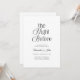 The clean black and white design creates a polished and upscale look that complements any venue — from intimate restaurant gatherings and rooftop dinners to ballroom receptions and destination wedding weekends.