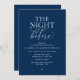Celebrate the magical evening before “I do” with this sophisticated and romantic rehearsal dinner invitation — perfect for honoring the couple as they prepare for their big day, in Navy Blue. Design Highlights, Modern minimalist aesthetic with bold serif typography and flowing script, “The Night Before” headline sets a dreamy, timeless tone, Clean layout with ample space for all essential details (date, time, venue, RSVP info) and Crisp black text on white background — classic, chic, and effortlessly elegant. Perfect for Intimate rehearsal dinners, Pre-wedding celebrations with family and close friends and Couples who love modern calligraphy and understated luxury. Fully customisable on Zazzle — personalize names, dates, locations, and even add your own colors or fonts. Print as flat cards, folded invitations, or digital downloads. Let your guests know this is more than just dinner — it’s the night before forever. Order now and set the tone for an unforgettable celebration!