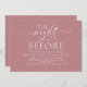 Celebrate the magical evening before “I do” with this sophisticated and romantic dusty rose pink rehearsal dinner invitation — perfect for honoring the couple as they prepare for their big day. Design Highlights, Modern minimalist aesthetic with bold serif typography and flowing script, “The Night Before” headline sets a dreamy, timeless tone, Clean layout with ample space for all essential details (date, time, venue, RSVP info) and Crisp black text on white background — classic, chic, and effortlessly elegant. Perfect for Intimate rehearsal dinners, Pre-wedding celebrations with family and close friends and Couples who love modern calligraphy and understated luxury.