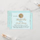 Invitation nuptiale chic de douche de thé faite à un arrière-plan de regard antique de graphique couleur de turquoise. Les graphiques d'un recouvrement semi transparent de blanc a l'antiquité blanche regarder des bords, sur des les deux côté, et une assez peu de peinture vintage ronde d'un pot de thé décore le dessus de la carte. Personnalisez le texte brun noir et d'or pour votre événement nuptiale de thé.