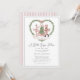 The Nutcracker Little Sugarplum Girl Baby Shower Invitation - a truely whimsical baby shower invitation featuring the sugarplum fairy and the nutcracker decorating the Christmas Tree on a cloud, surrounded by a greenery heart and pink coquette bow. Adorable!