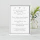 Design front features a pure white background to elegant, silver-colored text displayed in the proper format for a traditional Catholic wedding invitation. The image of a cross is displayed at top center between the initials of bride and groom. Entire design is framed by a fine, elegant border which adds a classy appearance to the design.