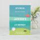 Fêtez un anniversaire de trou en un avec cette invitation de golf design ! Doté d'un tee design vert avec une balle de golf et un agencement propre, cette carte modifiable est parfaite pour les enfants ou les adultes qui aiment le jeu. Customisez facilement les détails de votre événement en utilisant les outils de design simples de Zazzle. Idéal pour des anniversaires sur le thème du golf, des événements de club de campagne ou des célébrations en plein air.