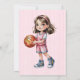 Célébrez votre petite athlète avec cette invitation amusante pour la fête d'anniversaire de basket-ball des filles! Doté d'un joueur de basket-ball féminin vêtu d'un uniforme rose avec des chaussures haut-de-gamme à parties scintillant bleue étincelante, ce design est parfait pour une fête sur le thème du sport. Idéal pour les filles qui aiment le basket-ball, cette invitation donne le ton d'une fête de slam dunk.