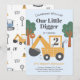 Thème de construction de deux ans Anniversaire Fête Invitation Célébrez votre petite crevette avec ce design avec un thème de construction.