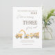 Préparez-vous à "arrêter la circulation et fermer la route" pour une fête fantastique ! Notre invitation sur le thème de la construction pour le 3e anniversaire de votre enfant est tout à propos de plaisir et d'excitation. Avec ses camions de construction jaunes et le mot "TROIS" en police d'aquarelle pleine de charme, cette invitation modifiable est votre billet pour une fête sur le thème de la construction qui laissera une impression durable. Creusons ensemble un panier d'anniversaire mémorable !
