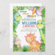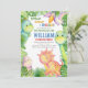 Stompe, chompe et rugir dans le plaisir d'anniversaire avec cette adorable invitation de dinosaure vert aquarelle! Dotée d'illustrations de dino ludiques, de verdure et d'une aquarelle douce, cette carte modifiable est parfaite pour les garçons et les filles qui aiment les dinosaures. Personnalisez facilement le nom, l’âge et les détails de la fête à l’aide des outils de personnalisation de Zazzle. Idéal pour les anniversaires de tout-petits et les célébrations à thème dinosaure.