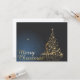 La carte de Noël est ornée d'un élégant sapin de Noël doré, fait d'étoiles scintillantes sur un arrière - plan bleu foncé. Le lettrage "Joyeux Noël" en lettres dorées et courbes arrondies complète avec élégance le design festif. 🎄 ✨