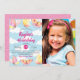 Cette adorable invitation à la fête d'anniversaire de papillon comprend de magnifiques papillons peints à la main, une calligraphie élégante, et une photo de l'enfant d'anniversaire. Personnalisez l'invitation à thème papillon avec vos propres photos et détails d'anniversaire.