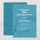 Invitation d'anniversaire sur mesure surprise (ou non) sur le thème de la pêche pour lui. Couleur de fond bleu eau de mer avec des images de canne à pêche et de poissons de mer et texte blanc en deux tailles. Le titre, ou le type de fête et le nom de l'invité d'honneur sont en plus gros caractères. Personnalisez facilement pour n'importe quel événement. Ce design a un thème masculin, mais convient à tout le monde. Allez dans la zone de personnalisation et changez les polices si vous le souhaitez.