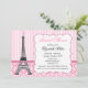 Invitation thème Tour Eiffel Paris en rose pour enterrement de vie de jeune fille ou toute occasion