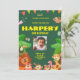 Petits explorateurs Invitations à une aventure sauvage avec cette Invitation d'anniversaire pour enfants à thème faunique! Dotée d'adorables animaux de la jungle et d'un design naturel dynamique, cette invitation personnalisable donne le ton parfait pour une fête amusante et inspirée de la nature. Idéal pour les jeunes amoureux des animaux, cette invitation fera le bonheur des invités pour une fête d'anniversaire pleine d'aventure et d'imagination !