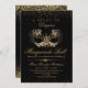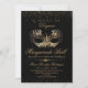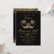 Invitation à bal Masquerade moderne et élégant. Calligraphie manuscrite élégante combinée à l'or (imitation or) une police moderne sur un arrière - plan noir foncé se complètent et semblent harmonieux en même temps.