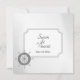 Un design nautique simple avec une roue de bateaux pour vos invitations de mariage. Placez les prénoms de mariée et mariée sur le devant avec la date donnant à vos invitations une sensation moins formelle. De l'autre côté, l'information mariage pertinente ajoute une flamme classique. Lorsque vous faites vos invitations triple vérifier toutes vos orthographes et dates.