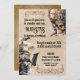Cette invitation personnalisée présente un thème de pirates réaliste et vintage dans un design de peinture aquarelle. Une image d'un crâne et d'une boussole nautique sont imprimées en haut à droite, avec un navire de pirate à l'allure maléfique en bas à gauche. L'arrière - plan ressemble à un rouleau de papier parchemin rustique.