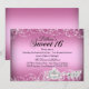 Invitation d'anniversaire Sweet 16 Rose & Argent. Thème princesse élégant avec cheval et carrosse diamantés. Remarque : Toutes les images sont plates, elles ne contiennent pas de vrais bijoux !
