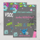 Une belle invitation tendance pour les petites filles mais aussi pour les plus grandes. Une invitation grise avec des couleurs vives et audacieuses. Tous les éléments sont créés par moi. Vous trouverez des baleines et des chouchous, un palmier et une voiture ancienne Volkswagen mignonne, un appareil photo instantané, une main shaka et un flacon, tous les incontournables des vsco girl sont ici sur cette invitation !