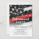 Invitation à une fête de retraite de pompiers pour célébrer un pompier qui prend sa retraite du service. Avec un drapeau américain avec la ligne rouge fine, des guirlandes lumineuses et un modèle de fête moderne.
