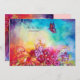 Peinture Whimsical, colorée et vibrante aquarelle en rouge vif, rose, fuchsia, jaune, bleu.vert, couleurs violettes .2009. Illustration d'un conte Andersen. Un petit, tout petit enfant qui est né dans une fleur, qui dormait dans une coquille de noix, qui rampait sur une feuille de tulipe ...