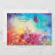 Peinture Whimsical, colorée et vibrante aquarelle en rouge vif, rose, fuchsia, jaune, bleu.vert, couleurs violettes .2009. Illustration d'un conte Andersen. Un petit, tout petit enfant qui est né dans une fleur, qui dormait dans une coquille de noix, qui rampait sur une feuille de tulipe ...