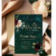 Invitation Tiara d'or, Fleurs Bourgogne Vert Quinceañera