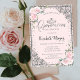 Invitation Tiara en argent chic, Fleurs roses diamants Quince