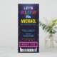 Fêtez votre fête d'anniversaire avec notre invitation de billet Neon Glow. Ceci permet de faire briller le billet d'entrée de la fête Caractéristiques futuristes lustrons texte sur arrière - plan sombre. Cette invitation branchée à la discothèque lumineuse est parfaite pour les rolldisco ou les fêtes éclatantes.