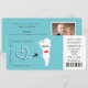 Une invitation de mariage amusante mais élégante à destination dans un style carte d'embarquement/billet pour les couples se mariant à l'étranger dans le Gibraltar qui est montré dans une silhouette carte blanche sur le bleu turquoise avec coeur d'amour rouge sucré, silhouette d'avion et forme de coeur tourbillonnant blanc. Le verso de la carte d'embarquement est facile à customiser avec une photo et vos coordonnées de mariage personnel