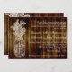 Faire-part de mariage présente l'image estampillée Mason jar en blanc, sur une planche de bois brun foncé arrière - plan (pas du bois réel). Un thème d'extérieur semi-grungy pour un été champêtre ou mariage cabine. Les planches en bois marron chocolat foncé d'une clôture ou d'un plancher antique contrastent avec l'image d'un bocal de mason blanc découpé avec le souffle du bébé et d'autres fleurs sauvages en dentelle. Tous les dessins © www.CustomInvitesOnline.com
