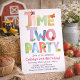Celebrate your little one with this adorable “Time Two Party” 2nd birthday invitation. Featuring colorful watercolor lettering and sweet garden bugs like bees, ladybugs, butterflies, and snails, this cheerful design is perfect for a fun and playful second birthday celebration.
