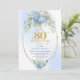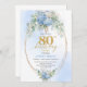 Invitation Timeless Dusty Blue Floral 80th Birthday Invite