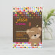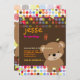 Ours en peluche et invitations colorées à la fête d'anniversaire des pois.