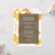 Dégustez vos invités avec ces invitations de mariage feuilles de ginkgo, élégantes et modernes. Le texte est défini dans des polices classiques sur un bloc de couleur bordé qui recouvre des feuilles dorés. Remplacez simplement l'exemple de texte par vos informations mariages. Le motif feuille se poursuit à l'arrière des invitations.