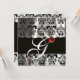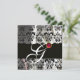 INVITATION TISSU DE DAMAS DE SOIE NOIR BLANC MONOGRAMME ROSE