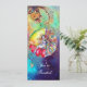 Fée colorée et capricieuse assise sur une fleur rouge éclatante d'or et de couleurs vives.Peinture acrylique avec feuille dorée et argentée aux couleurs irisées.