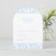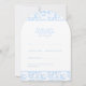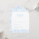 Faire-part de mariage de la chinoiserie toile de la jungle bleu clair avec léopards et singes, parasols et papillons.