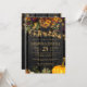 Belles fleurs automnales rouillées et bordeaux foncé et bordures citrouilles avec cordes de lumières scintillantes dorées sur un arrière - plan de grange brun foncé faisant une élégante invitation de fiançailles FALL IN LOVE avec une écriture manuscrite manuscrite script de typographie or. ++++++++++ Facile à personnaliser avec vos détails ! ++++++++++++++++++++ Convient pour automne traditionnel rustique | pays | ferme | fiançailles de jardin extérieur ou autre avant les mariages / barbecues.