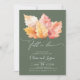 Cette invitation de fiançailles présente de belles feuilles d'automne, ce qui en fait un endroit parfait pour une fête sur le thème de l'automne. L'invitation est simple et élégante. Les feuilles d'automne apportent une touche de fantaisie et de plaisir, et le design général est parfait pour célébrer le prochain mariage du couple.