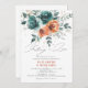 Cet automne Love Turquoise Burnt Orange Botanical Floral Mariage ou Bridal Shower Invitation capture l'essence de l'automne avec une bordure botanique florale boho avec aquarelle rose et mariage feuillage dans les tons riches et chauds de turquoise et terre cuite brûlé orange, ainsi que le titre "Falling in Love" dans la calligraphie moderne. Le design accueillant est complété par une texture aquarelle pâle, évoquant l'air croustillant et les teintes dorées de la chute. Idéal pour une mariée qui planifie une douche nuptiale rustique ou un jardin intimiste, cette invitation reflète parfaitement l'atmosphère cosy et romantique de la saison d'automne, mêlant art romantique et élégante simplicité pour tout lieu.