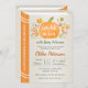 Automne "Let's Fall in Love" invitation à l'arrosage bébé/douche conçue comme une couverture de livre en orange et vert clair. Pour les objets correspondants, visitez le site https://www.zazzle.com/store/violinevents