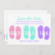 Enregistrez la date avec ces tongs colorées amusantes et tropicales. Ajoutez votre date et les informations au besoin.