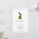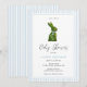 Elegant and preppy hand painted watercolor Topiary Bunny boy Baby Shower invitation with blue pinstripe border perfect for spring/ summer baby shower.