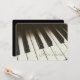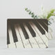 Une invitation de mariage avec une photographie sur le thème musical représentant une image rapprochée de touches de piano noir et blanc.
