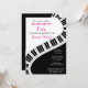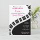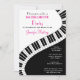 Une invitation de fête d'enterrement de vie de jeune fille sur le thème de la musique. Touches de piano clavier noir et blanc en forme de vague. Personnalisez avec vos détails de fête personnels.